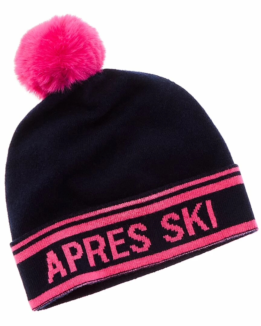 - Apres Ski Pom Hat in navy multicolor with removable faux fur pom