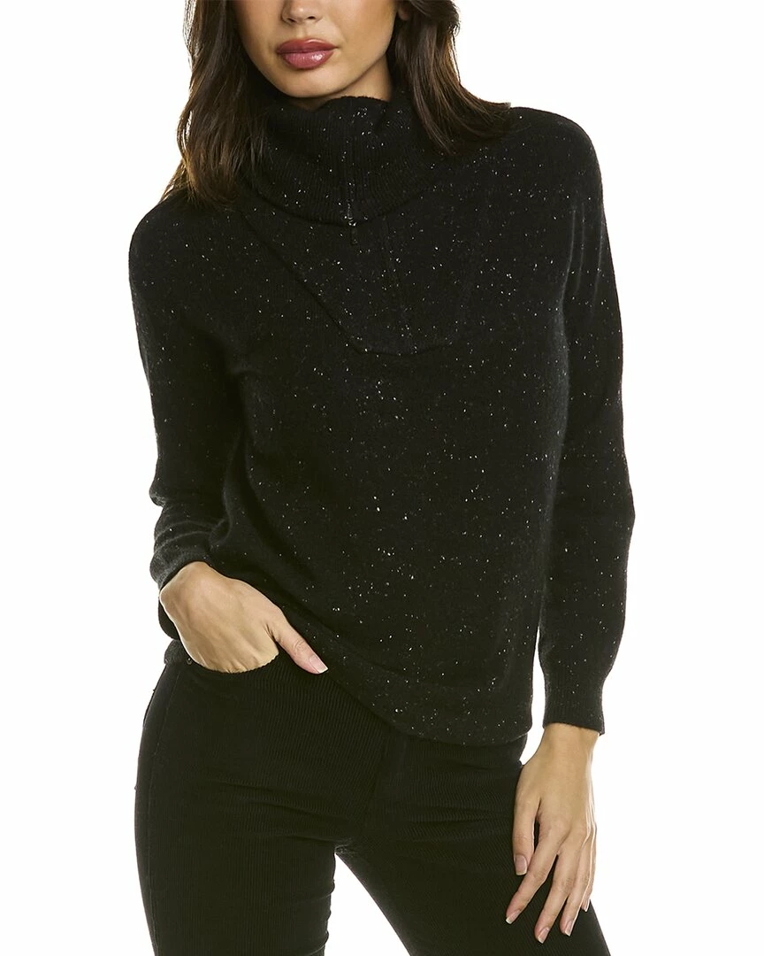 - Audrey Zip Up Cashmere Sweater in black with turtleneck and dropped-shoulder sleeves