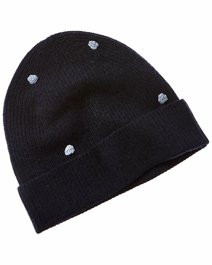 - Bobble Cashmere Beanie in navy multicolor with knit bobbles