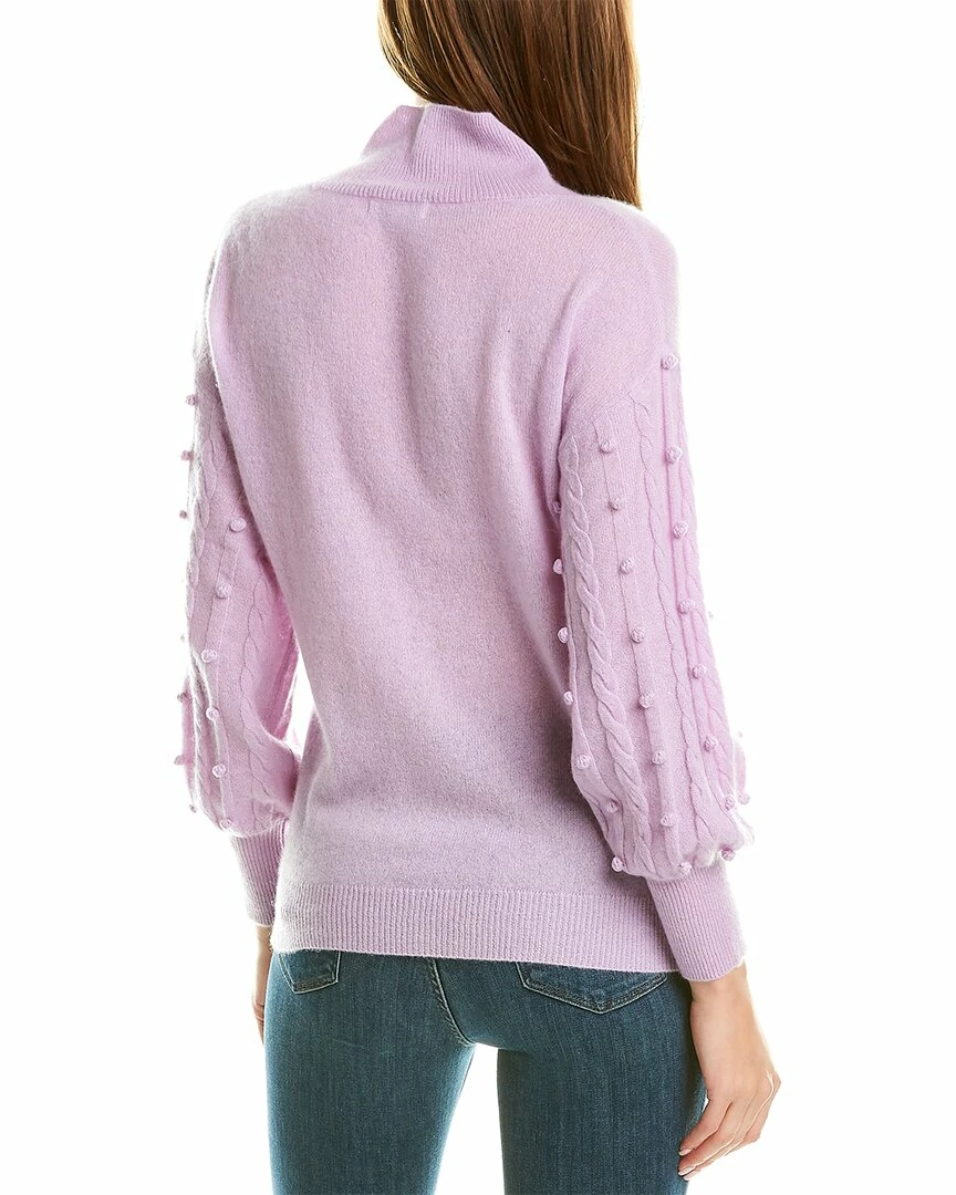 - Bobble Sleeve Cashmere Sweater in purple with turtleneck, knit bobbles at sleeves and ribbed trim