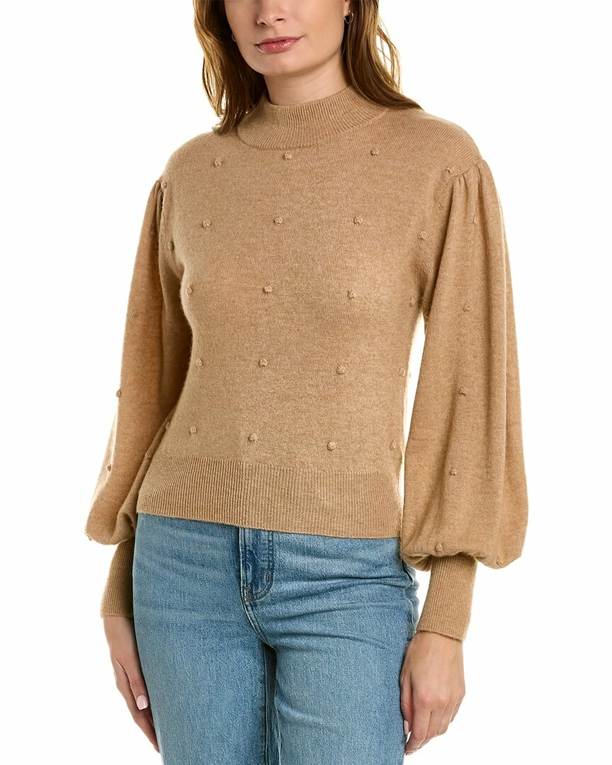 - Bobble Wool & Cashmere-Blend Sweater in brown with mock neck, dropped-shoulder balloon sleeves, and ribbed trim