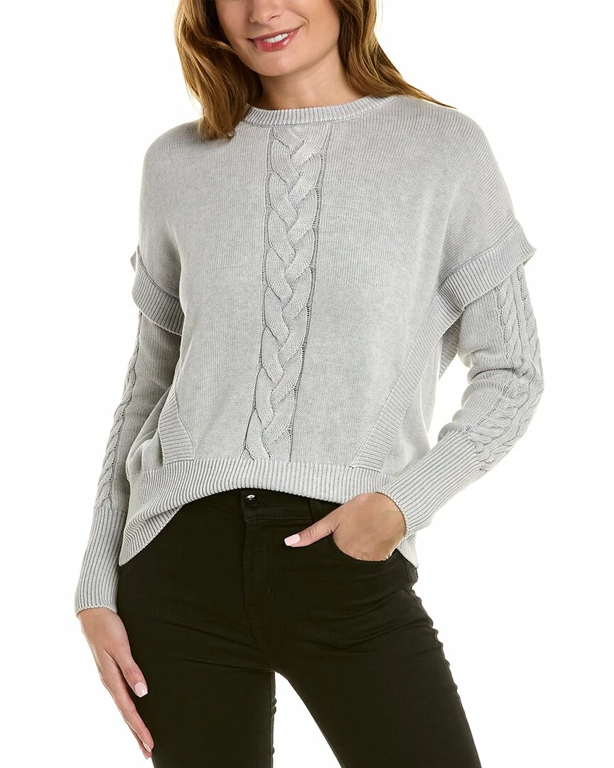- Cassie Silk-Blend Sweater in grey with dropped-shoulder sleeves and ribbed trim