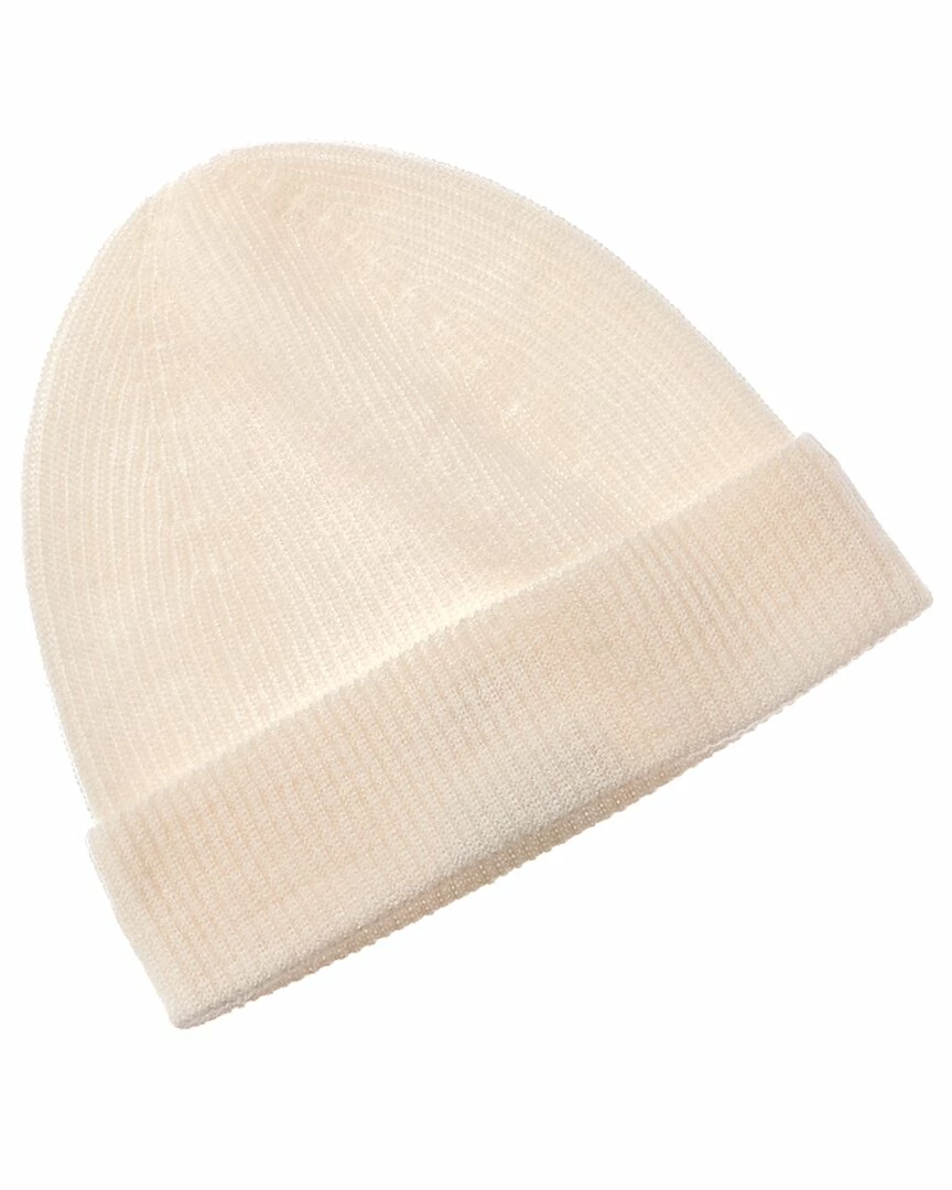 - Classic Cashmere Beanie Hat in white with rolled hem