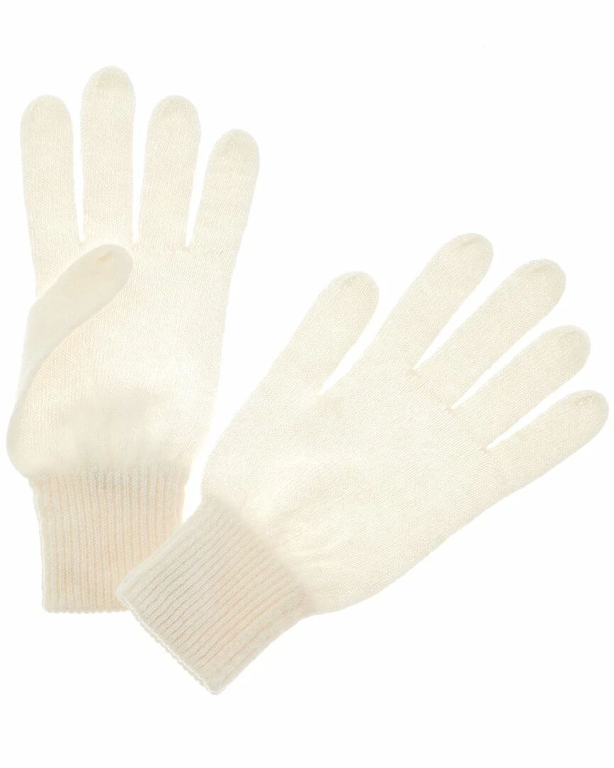 - Classic Cashmere Gloves in white with ribbed cuffs