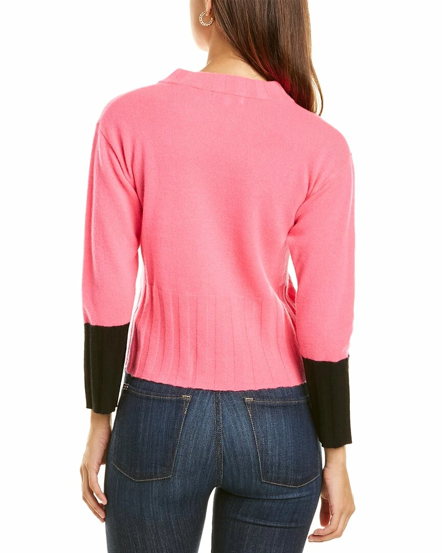 - Claudia Cashmere Sweater in pink and black with mock neck and ribbed trim