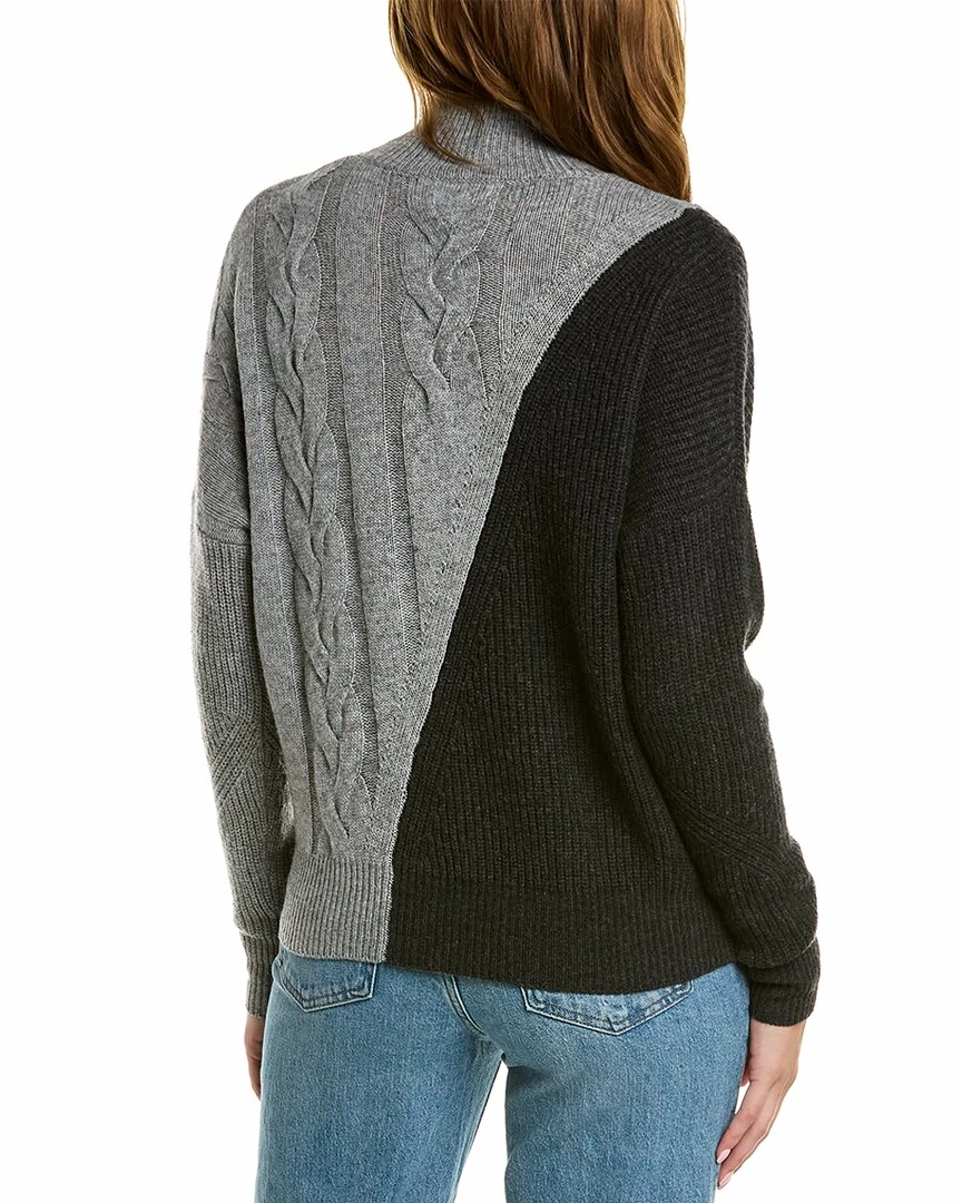 - Colorblock Wool & Cashmere-Blend Sweater in grey and navy with turtleneck and dropped-shoulder dolman sleeves