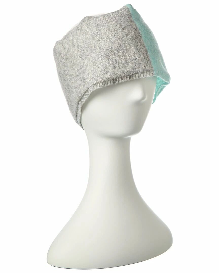- Colorblocked Ribbed Cashmere Headband in grey/blue with ribbed trim