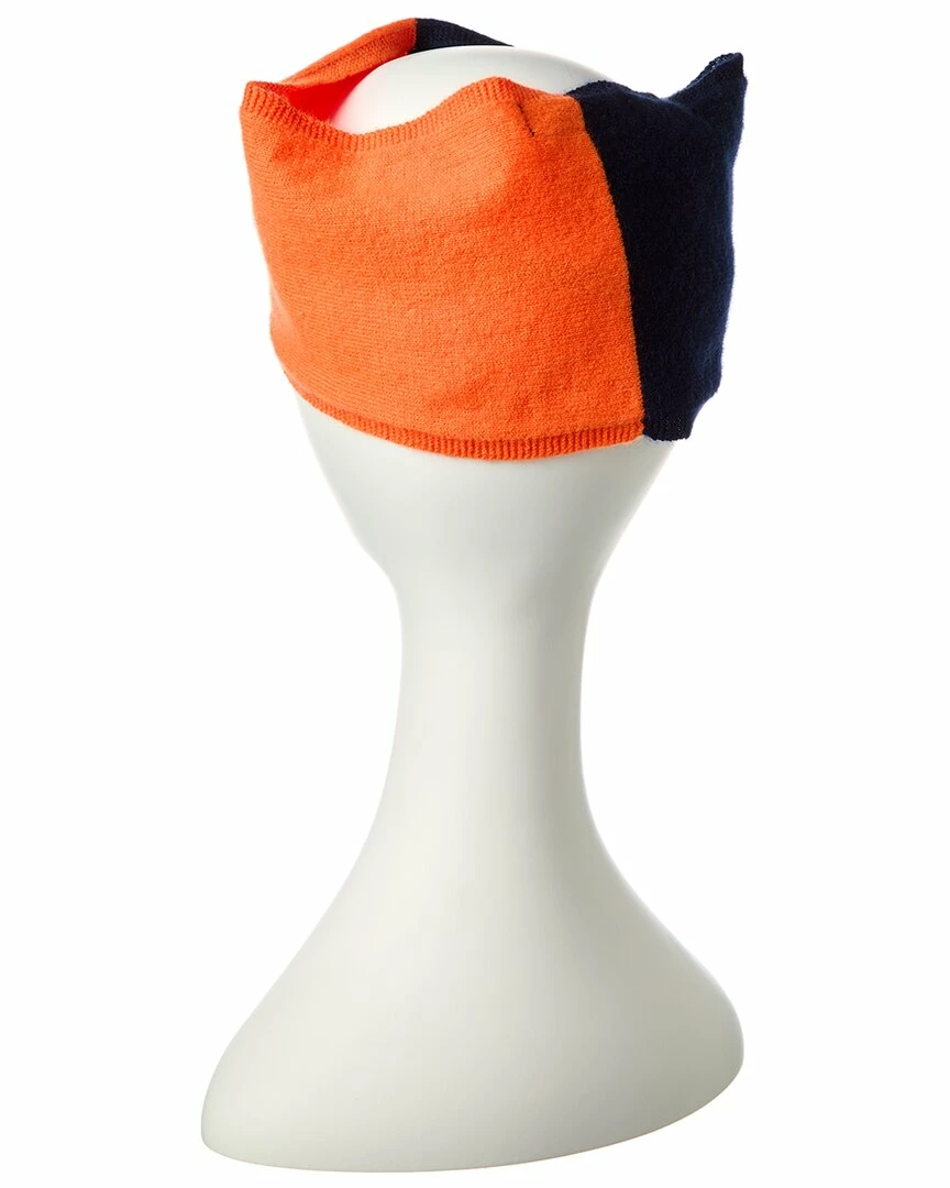 - Colorblocked Ribbed Cashmere Headband in orange with ribbed trim