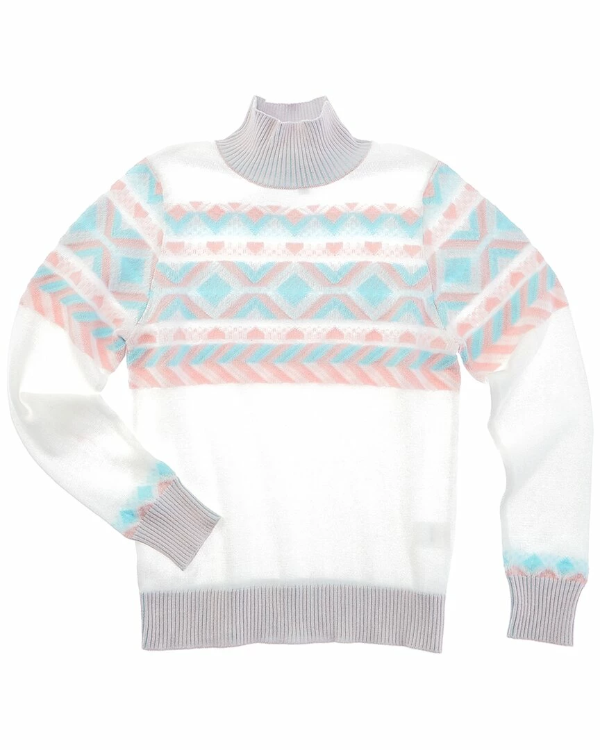 - Fairisle Mock Neck Sweater in white multicolor with mock neck and ribbed trim