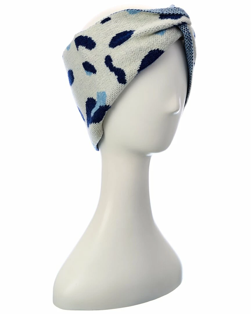 - Leopard Pop Twist Cashmere Headband in blue multicolor with twist accent