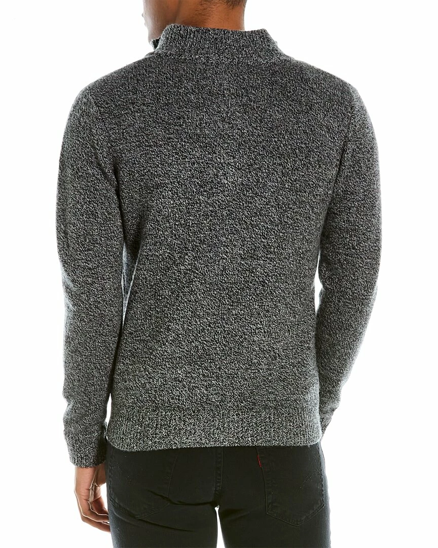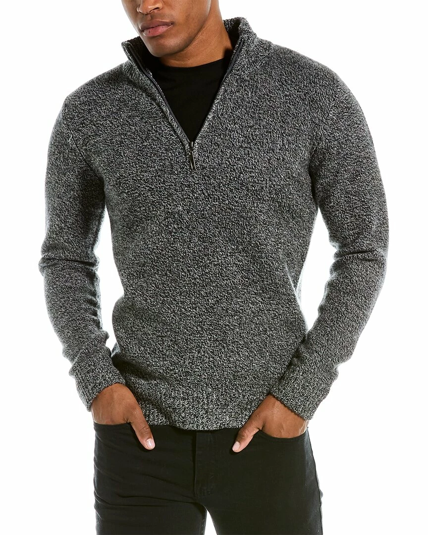 - Marled Wool 1/4-Zip Mock Sweater in grey with dropped-shoulder sleeves and ribbed trim