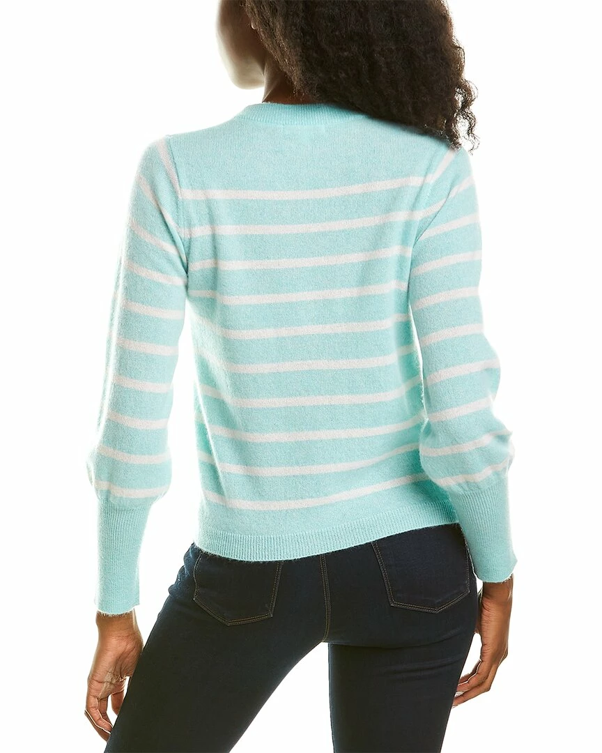 - Mock Cashmere Sweater in blue and white stripe with ribbed trim