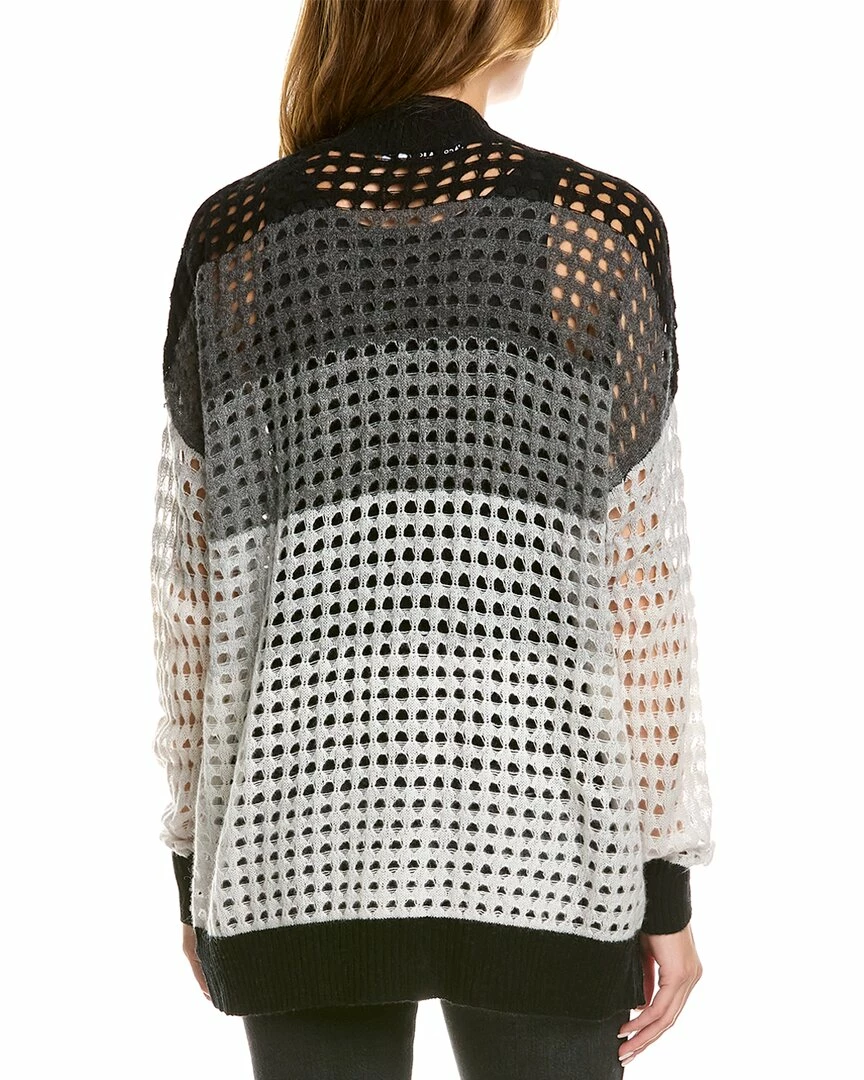 - Open Knit Cardigan in organic white, grey, and black with dropped-shoulder sleeves and ribbed trim