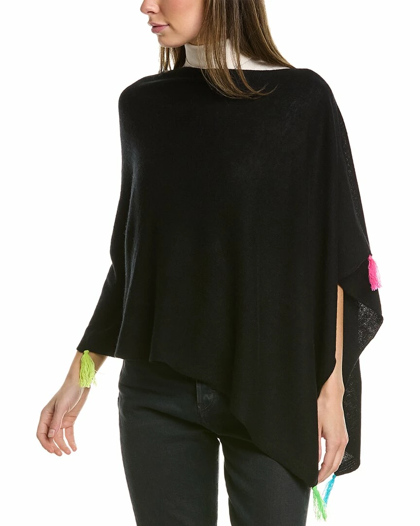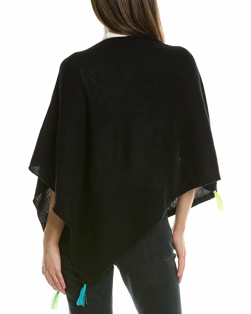 - Rainbow Fringe Cashmere Poncho in black with multicolor tassels