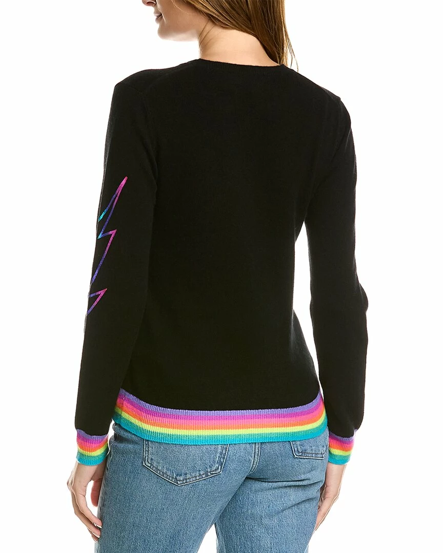- Thunder Strike Cashmere Sweater in black multicolor with ribbed trim