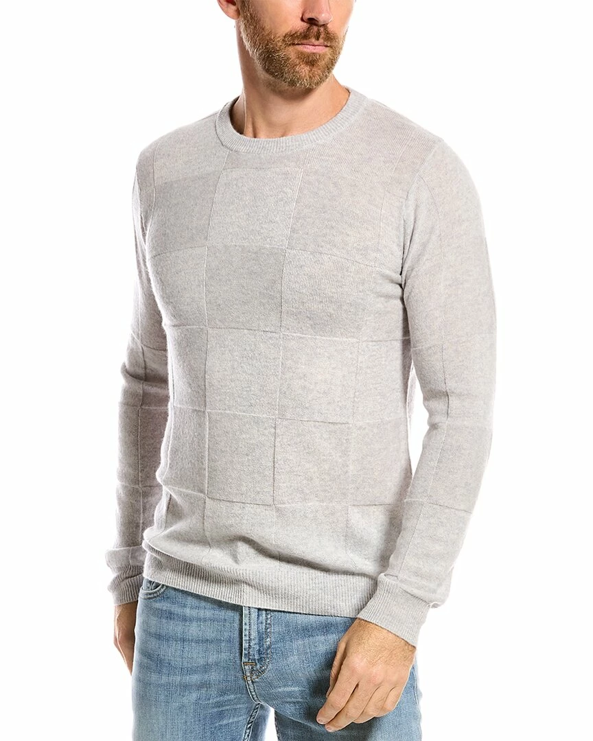 - Wool & Cashmere-Blend Crewneck Sweater in grey with checkerboard jacquard design
