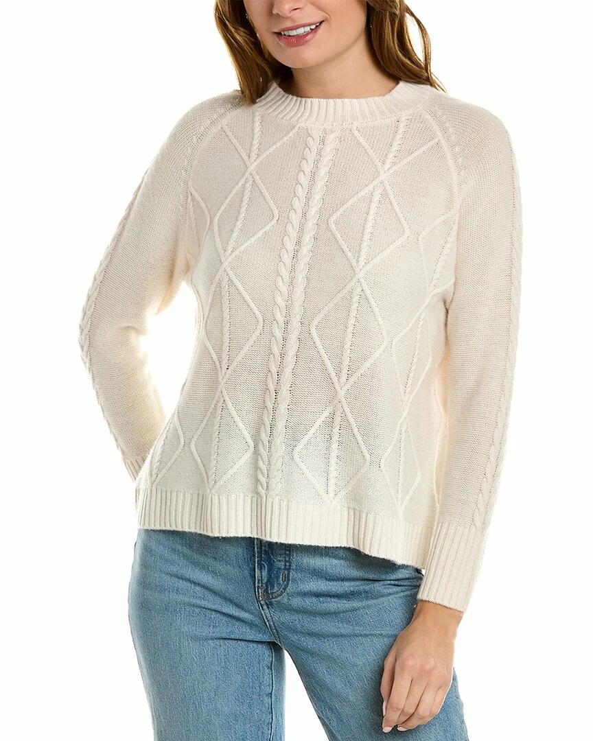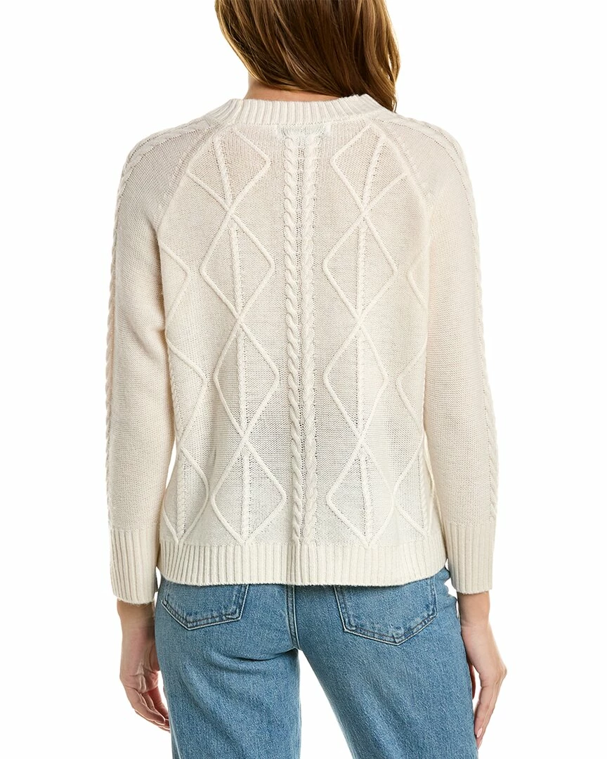 - Wool & Cashmere-Blend Sweater in white with raglan sleeves and ribbed trim