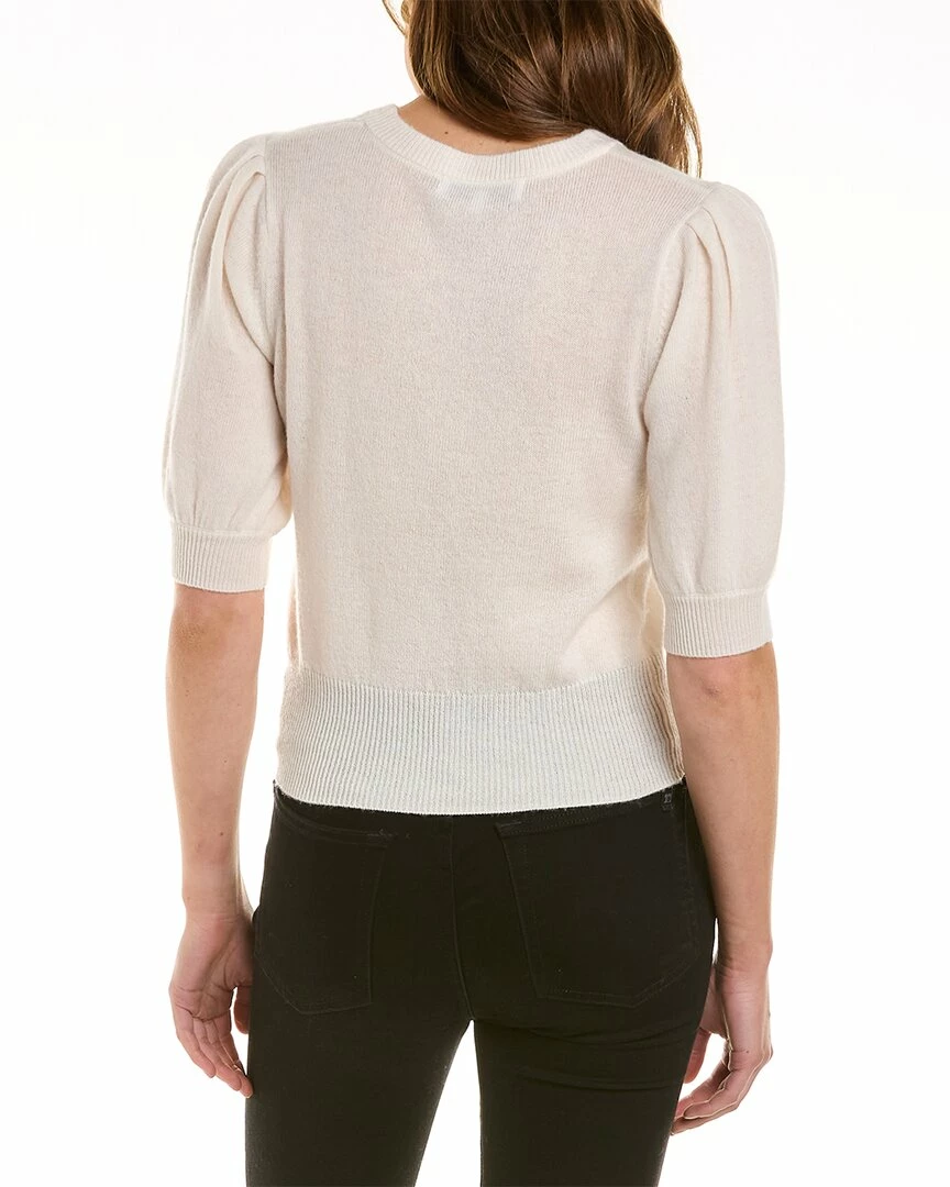 - Wool & Cashmere-Blend T-Shirt in white with 3/4-length puff sleeves